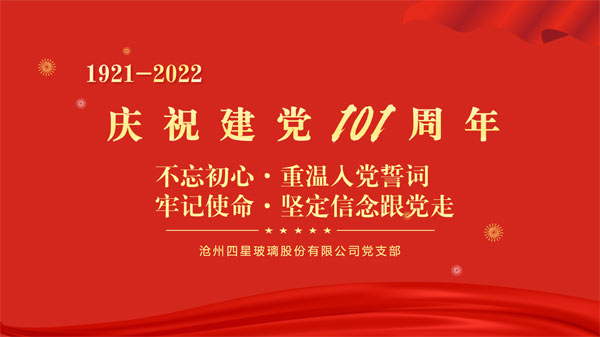 7月1日上午,滄州四星玻璃股份有限公司舉行黨員“不忘初心·重溫入黨誓詞;牢記使命·堅定信念跟黨走”主題黨日活動,慶祝中國共產黨成立101周年,喜迎即將召開的黨的二十大。